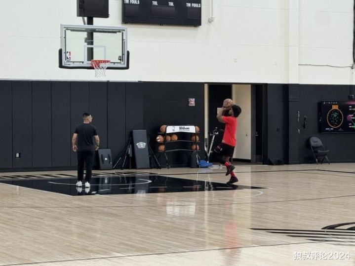 开拓者随队记者Sean Highkin晒照,开拓者后卫亨德森训练后单独进行了投篮练习,杨瀚森的翻译刘禹铖(克里斯)在旁边帮他捡篮板。