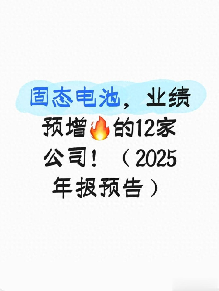 在政策与技术的双重驱动下,A股市场中布局固态电池的企业已开始释放业绩增长信号。结合已披露的2025年年报预告,本文梳理出净利润预增靠前的12家企业,从材料、设备到整车全链条拆解其增长逻辑,为读者提供有价值的行业参考。